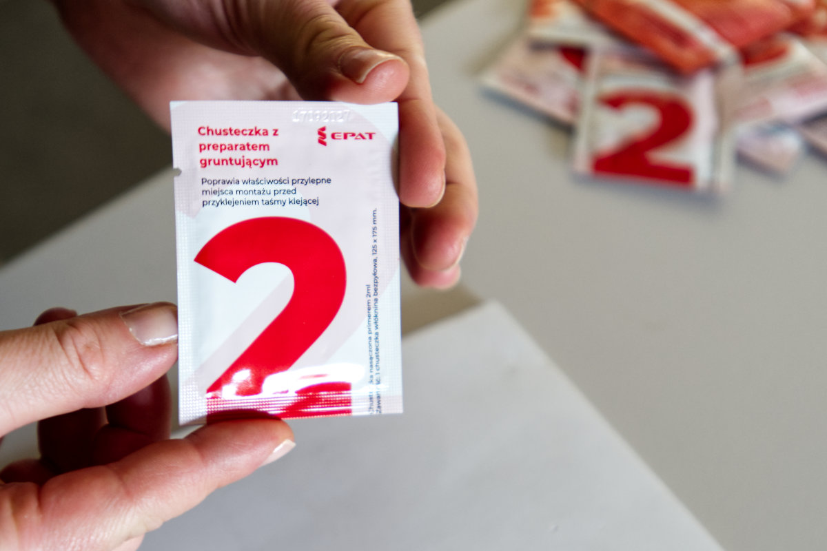 CH10*(1) - Chusteczka z preparatem gruntującym "Klej To" służy do zwiększenia przylepności taśm na powierzchniach niskoenergetycznych. Chusteczka pozostawia w miejscu zastosowania bardzo cienką, niewidoczną powłokę do której dobrze przylega klej. Stosuj ją zawsze na oczyszczoną i osuszoną powierzchnię. Aby uzyskać pełną wydajność przed jej zastosowaniem stosuj zawsze chusteczki do odtłuszczenia powierzchni "Klej To"